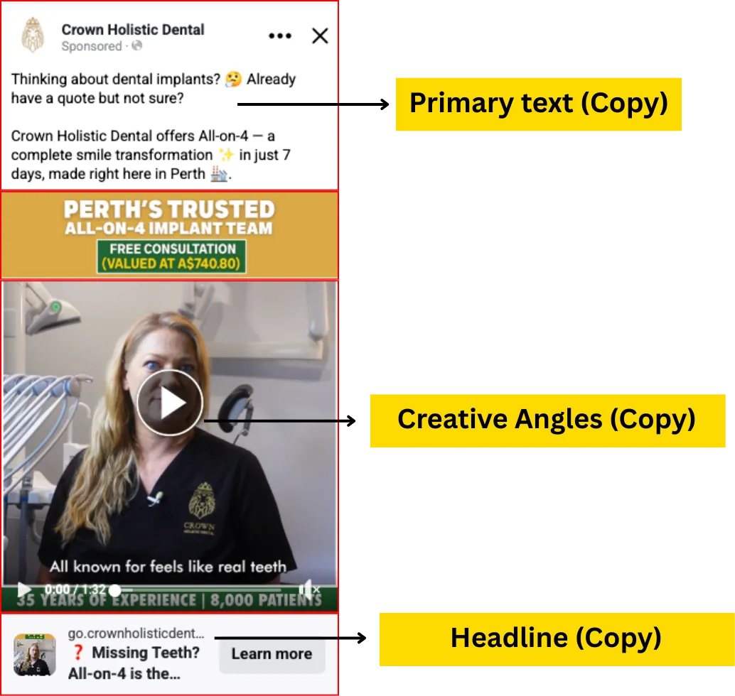 You’ll understand how high-performing ads are actually built — from visual structure and hook placement to copy hierarchy and CTA positioning. [By the end of this module, you’ll be able to break down any winning ad, identify why it works, and design creatives that align with Meta’s delivery signals.]