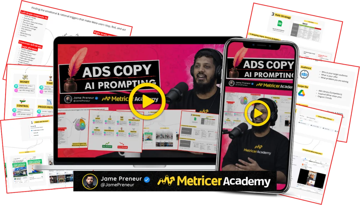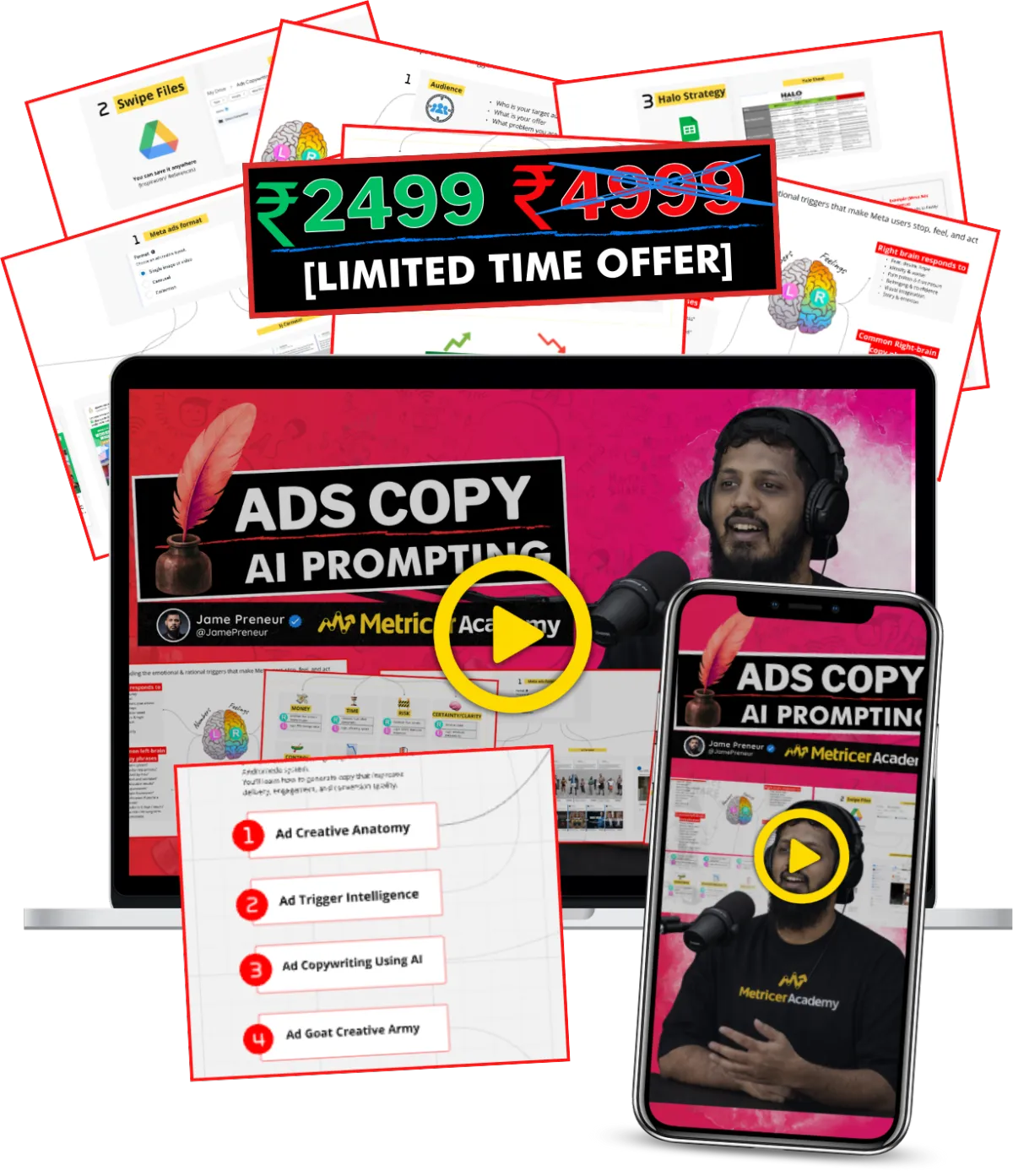 Ad Copywriting Using AI Prompting: You’ll learn how to generate 50+ high-quality hooks, primary texts, and headlines in minutes, while keeping control over tone, intent, and buyer psychology.]